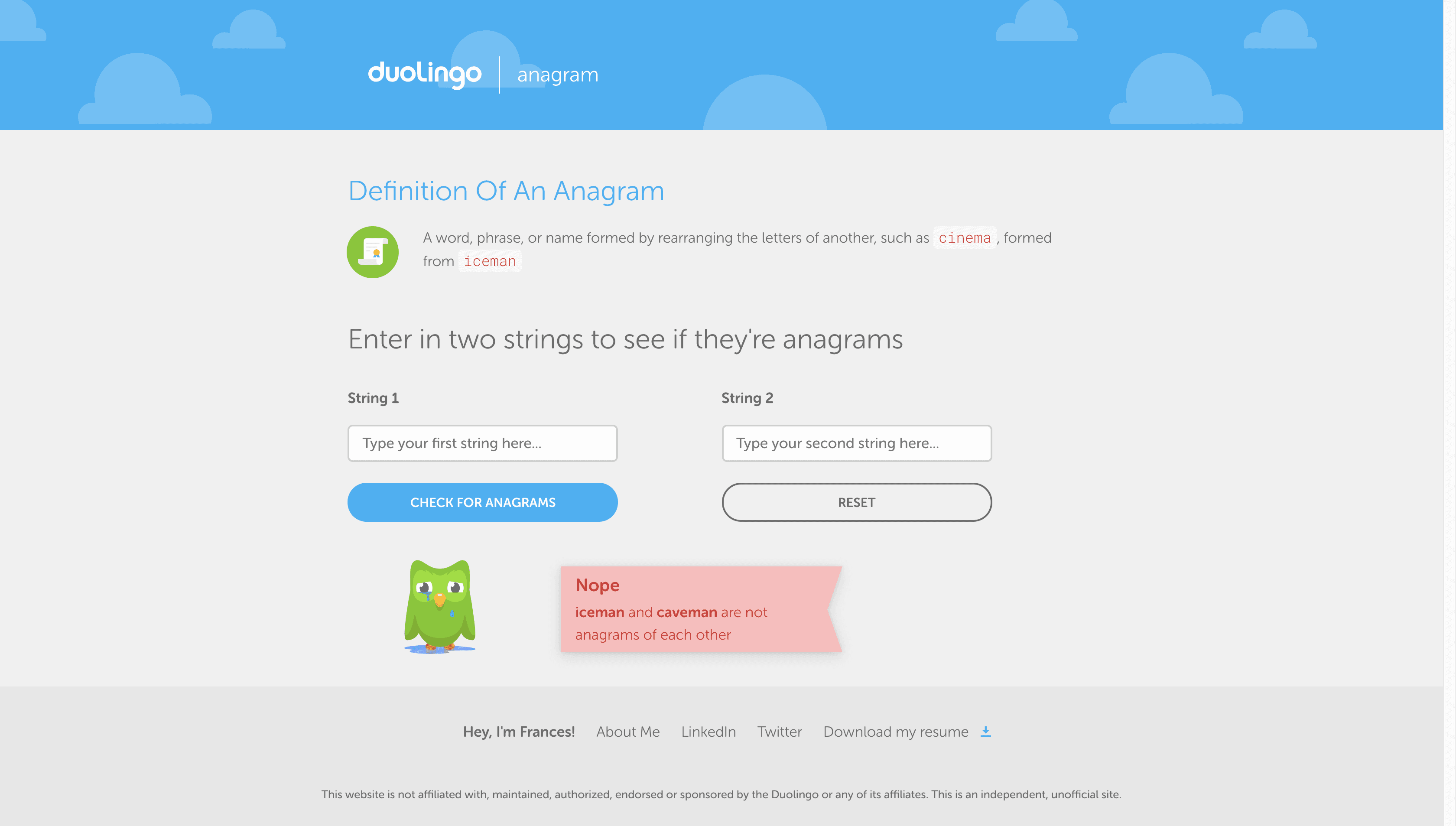 I created this simple website as part of the Duolingo PM intern interview process. ✅