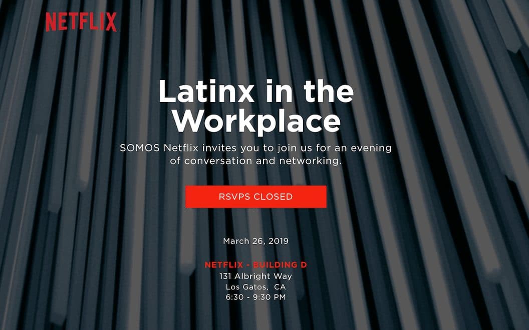 Latinx professionals in the entertainment and tech industries, hosted by SOMOS Netflix π https://latinxintheworkplace.splashthat.com/https://latinxintheworkpla