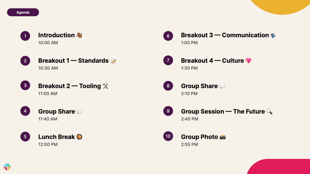 She also created a set of slides for the event that did a great job setting the stage for how the day would run from an agenda standpoint.