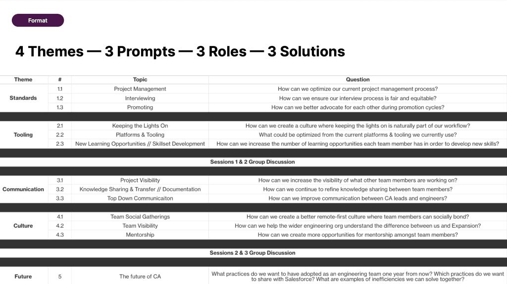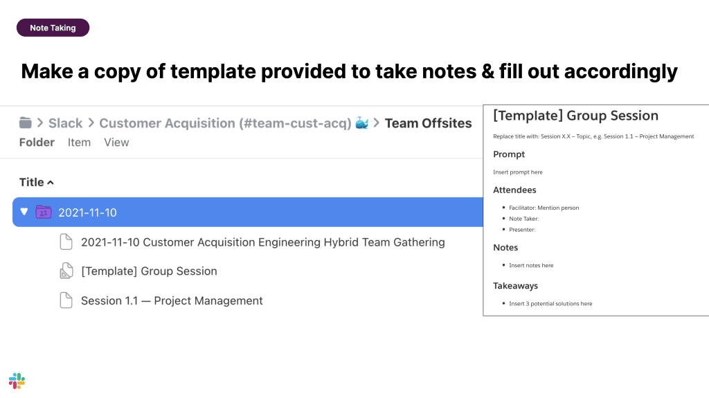 She created a doc template for each session so the teams could jot down notes & takeaways.