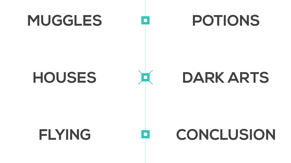- muggles (the difference between creators and consumers), - houses (what kind of software developer positions you can go into), - flying (what you can do to become a better developer), - potions (what specific tools are out there to help you become a better developer), - the dark arts (your real reasoning behind wanting to become a developer), - and a hearty conclusion (ultimately you should forge your own path).