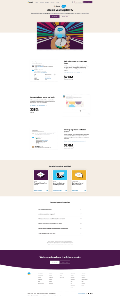 The goal of this web campaign is to inform prospects and users about the benefits of Slack and Salesforce.