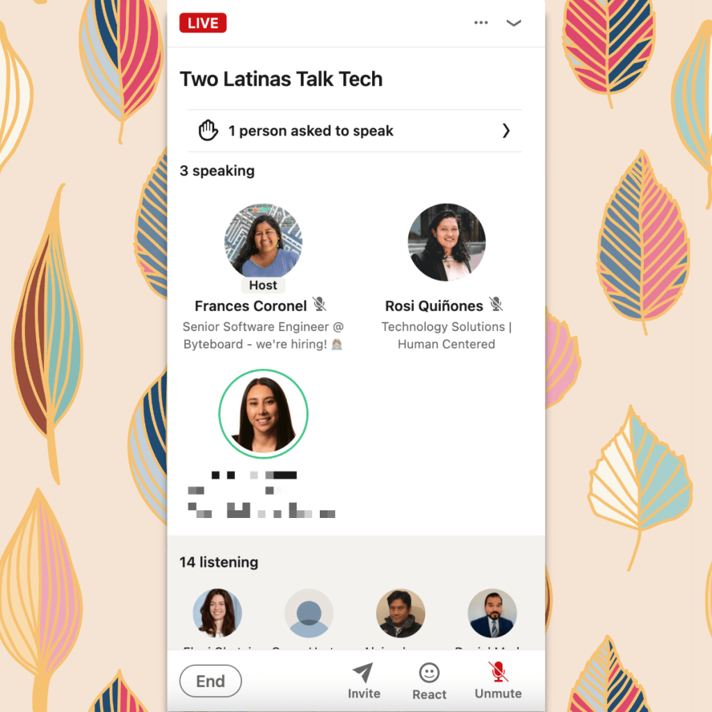 Hosted a LinkedIn Audio Event with Rosi Quiñones, a fellow Latina in tech, on how to break into the industry.