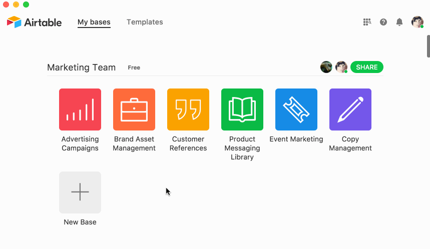 I can send a stand alone link to just view the specific table I’m logging in or all of them at once. Despite the complexity involved throughout the app, the UI makes it easy to navigate and do just about anything without having to reference documentation. Plus, there are so many base templates to choose from! 😲