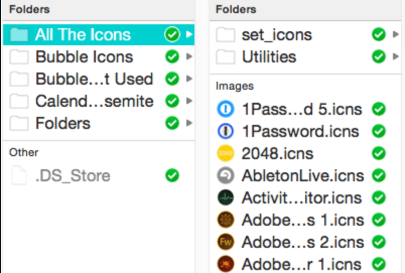 - a folder called All The Icons with - all the icons you want to replace your old ones (in icns format) - the ChangeIcons.command that was included in this ZIP file - a hidden sub-folder called .set_icons with - a modified icon-data.json file to include your own personal apps - the setfileicon UNIX executable file