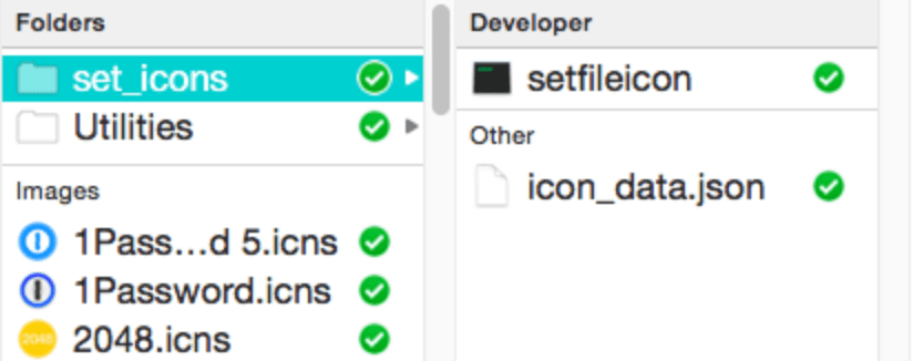 endNow here comes the tricky part. This command relies on a JSON file that is named icon-data.json and a UNIX Executable File called setfileicon.