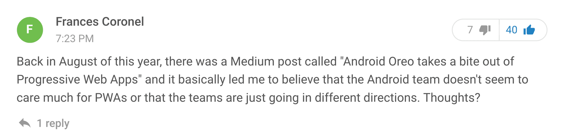 A two-day exploration of building beautiful and performant experiences on the web, with content on how to ship fast and modern Progressive Web Apps, as well as new and exciting features coming to the web platform.https://developer.chrome.com/devsummit/I actually blogged separately about my experience with the PWA Roadshow - check it out๐ zoom