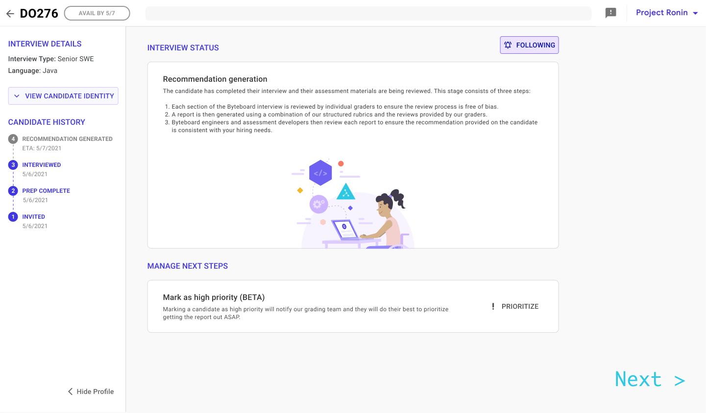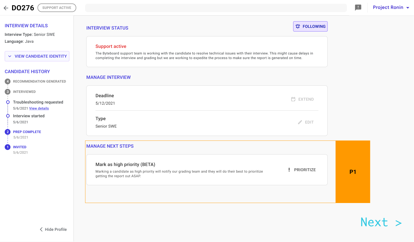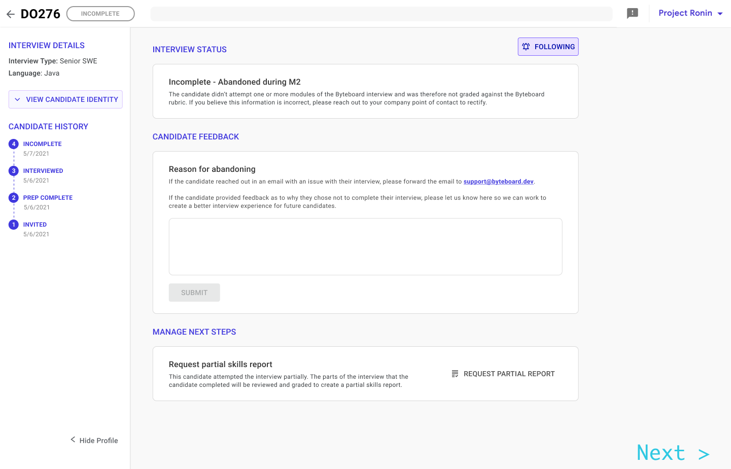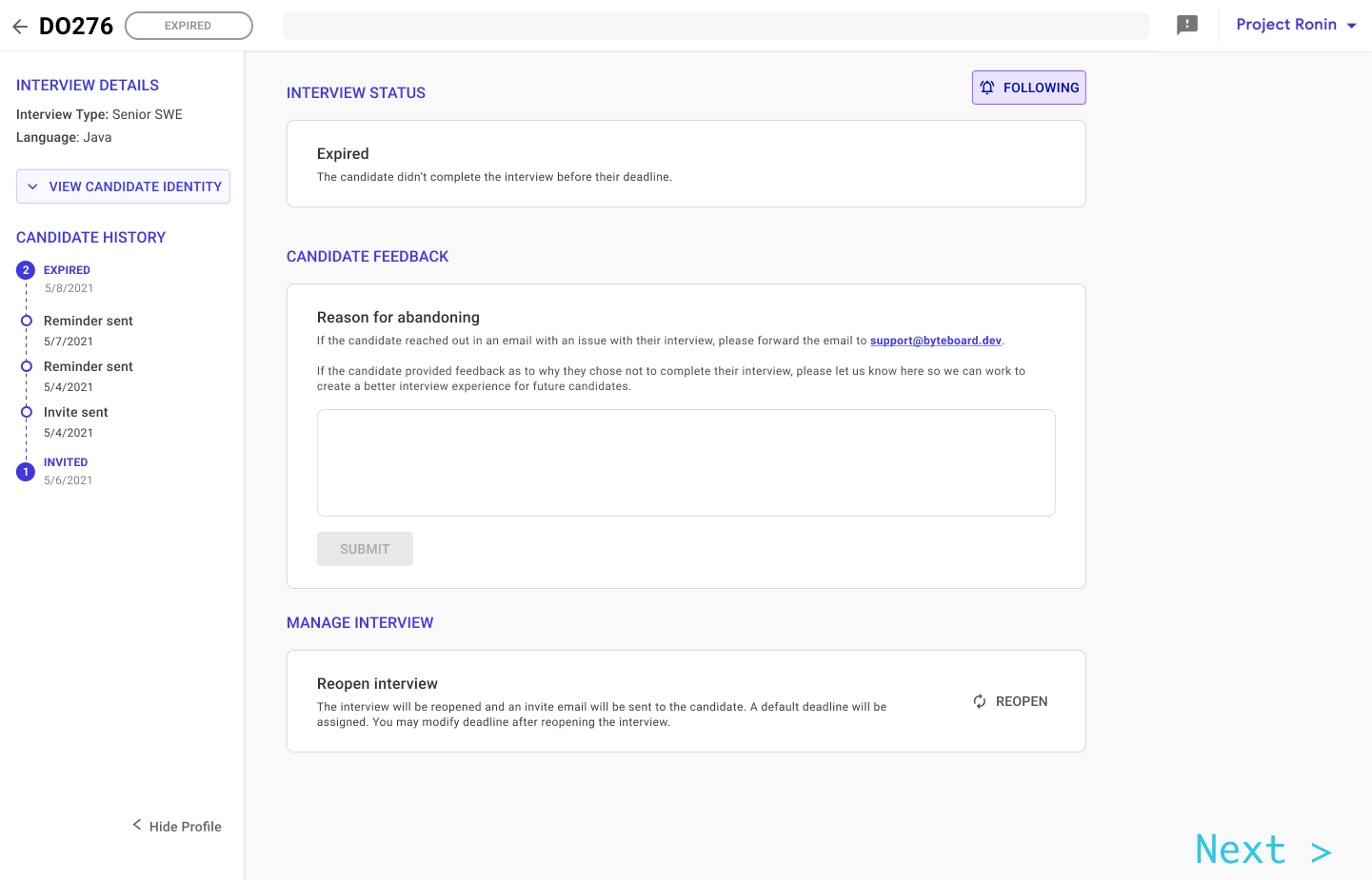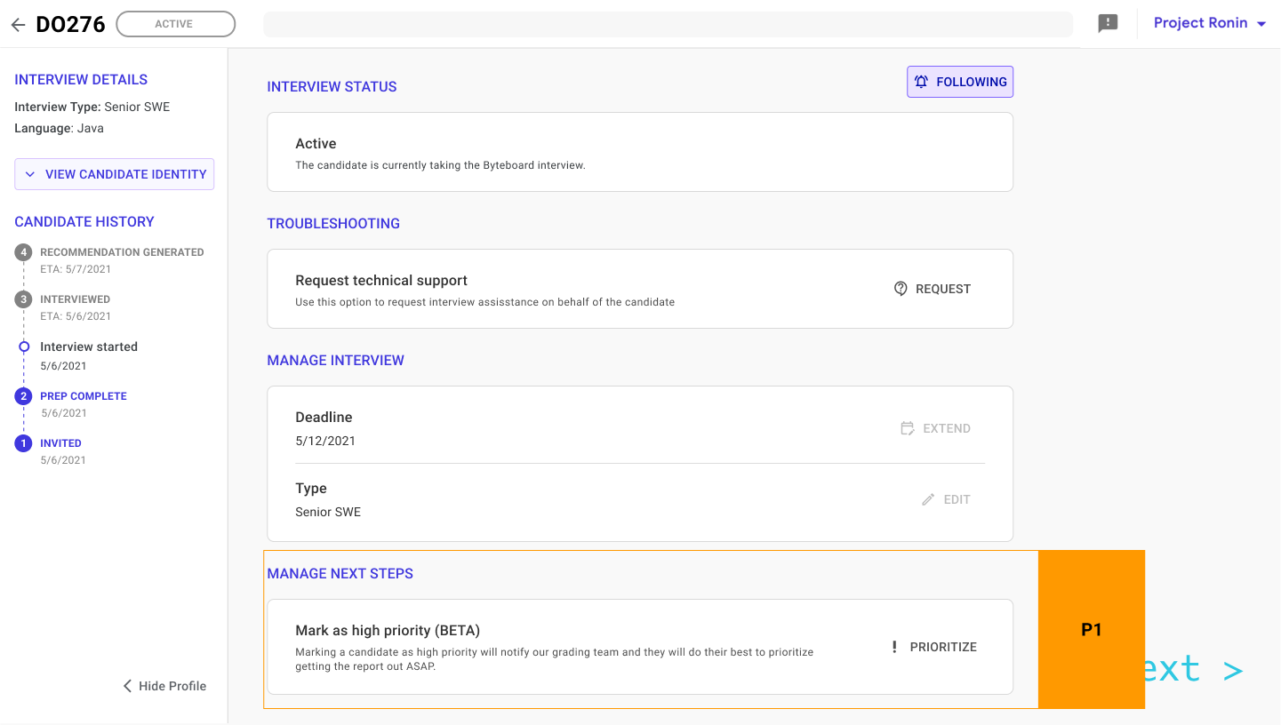 Helped update Byteboard's client platform to allow for self-serve actions on candidates and increase visibility.