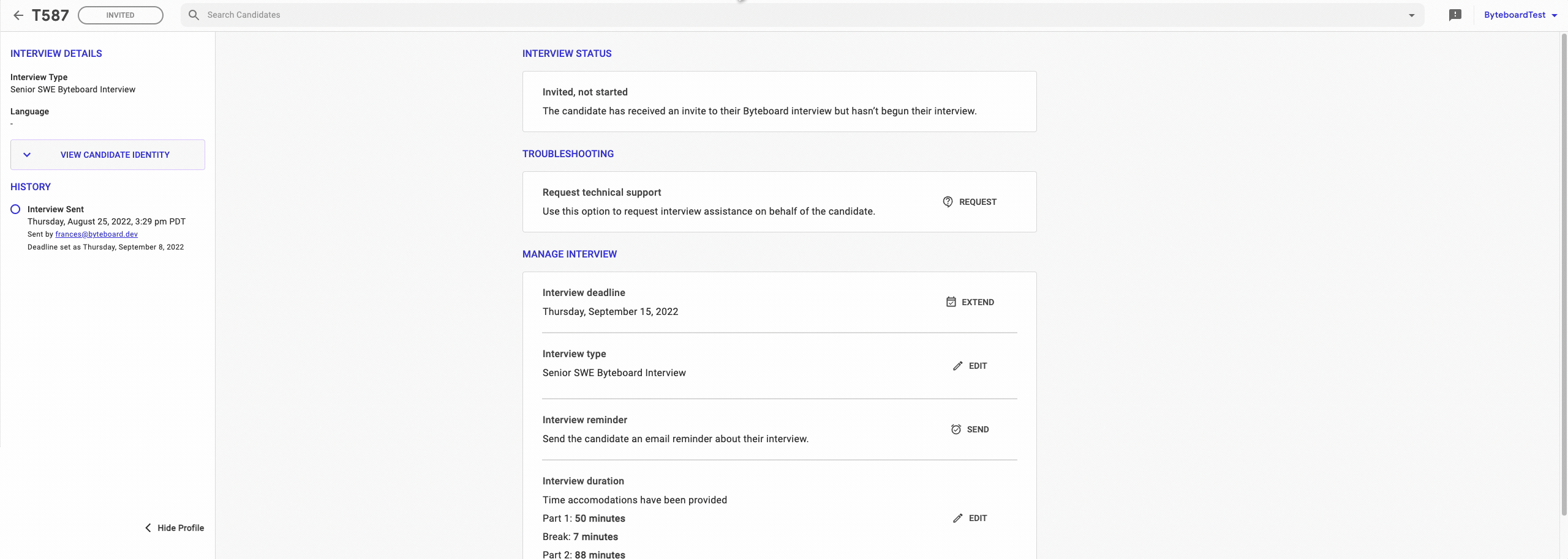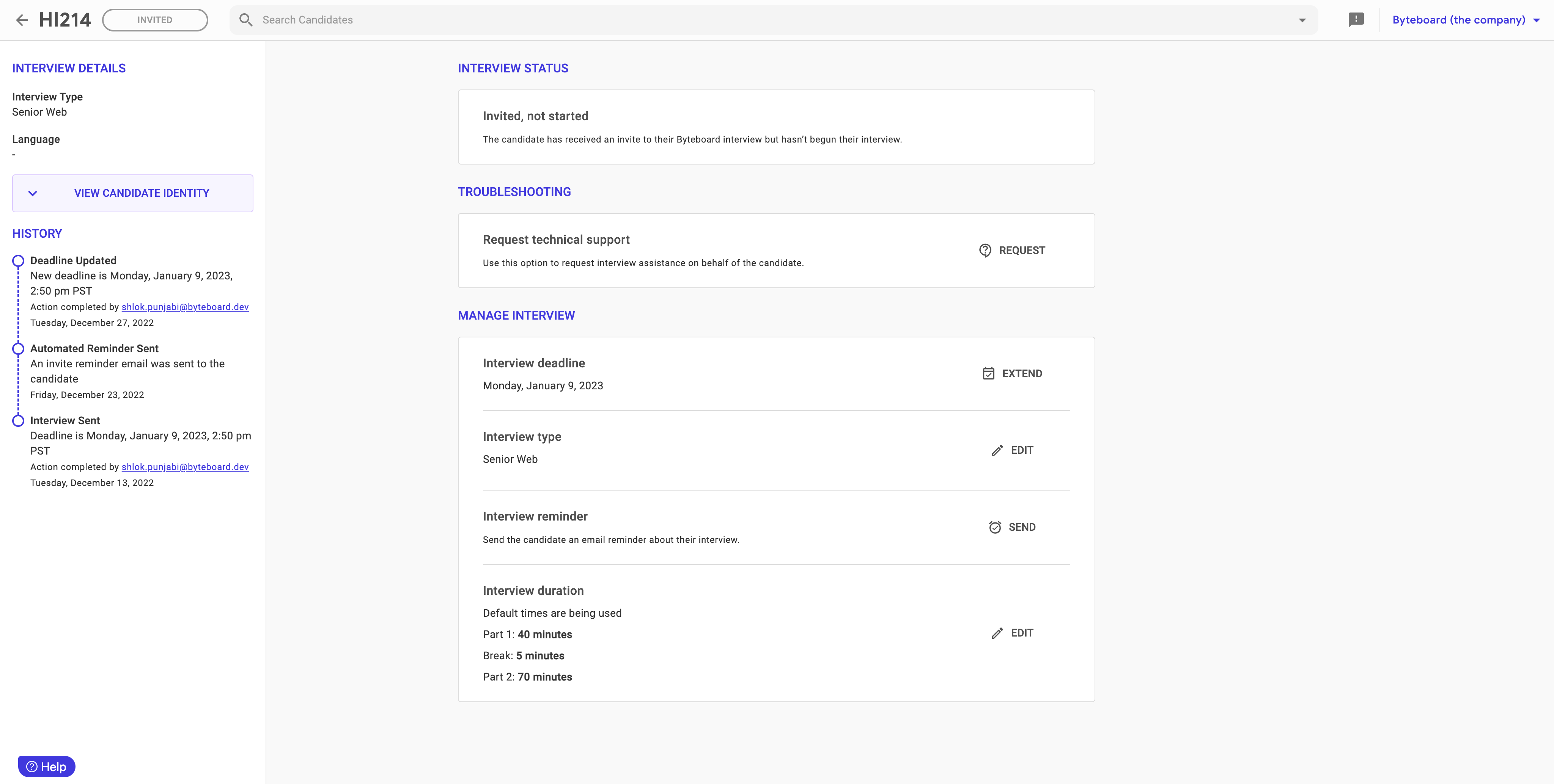 Self-serve candidate management tooling for Byteboard clients