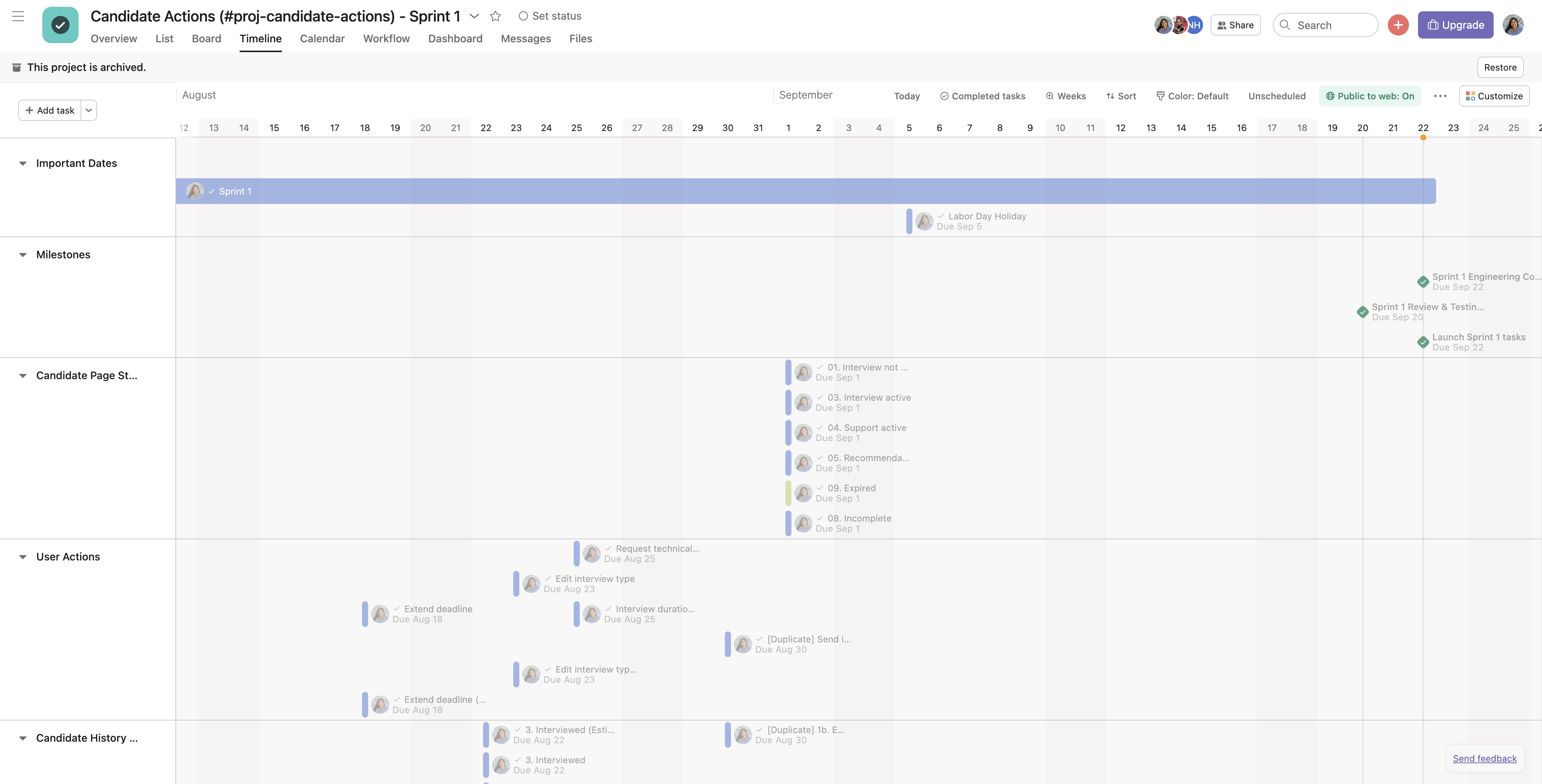 • New timeline component tracking all events on a candidate