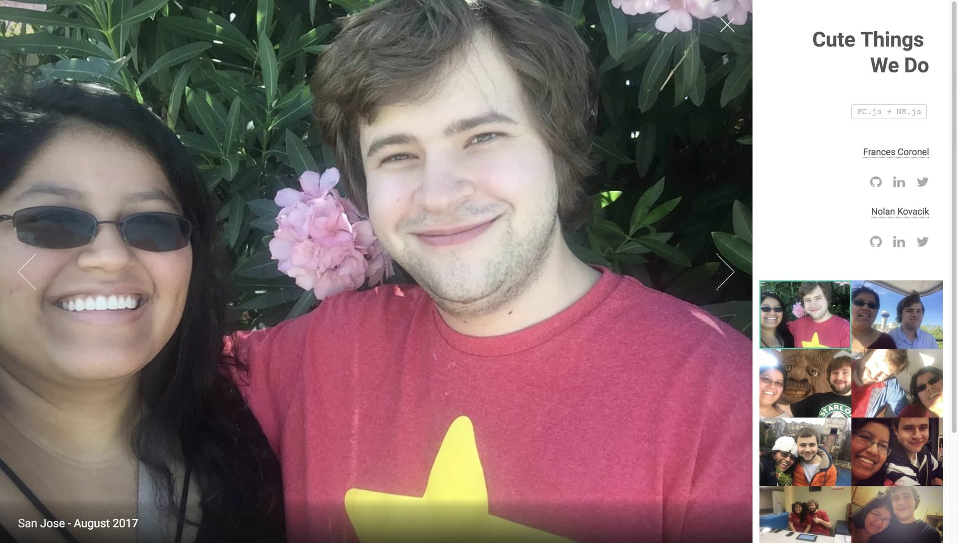 Cute Things We Do = FC.js + NK.js ❤ I felt like doing something non-traditional for Valentine’s day so I made my boyfriend this website showcasing a few picture