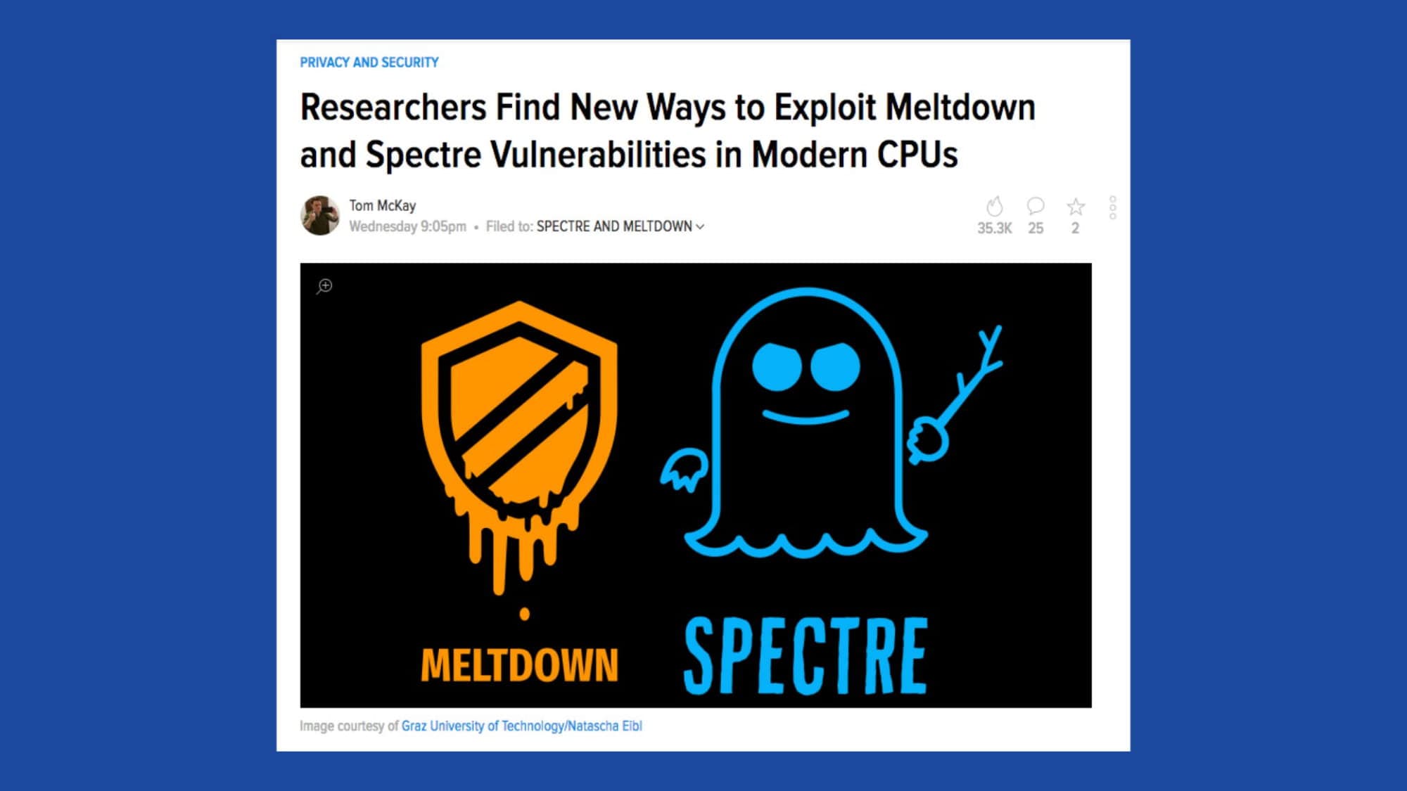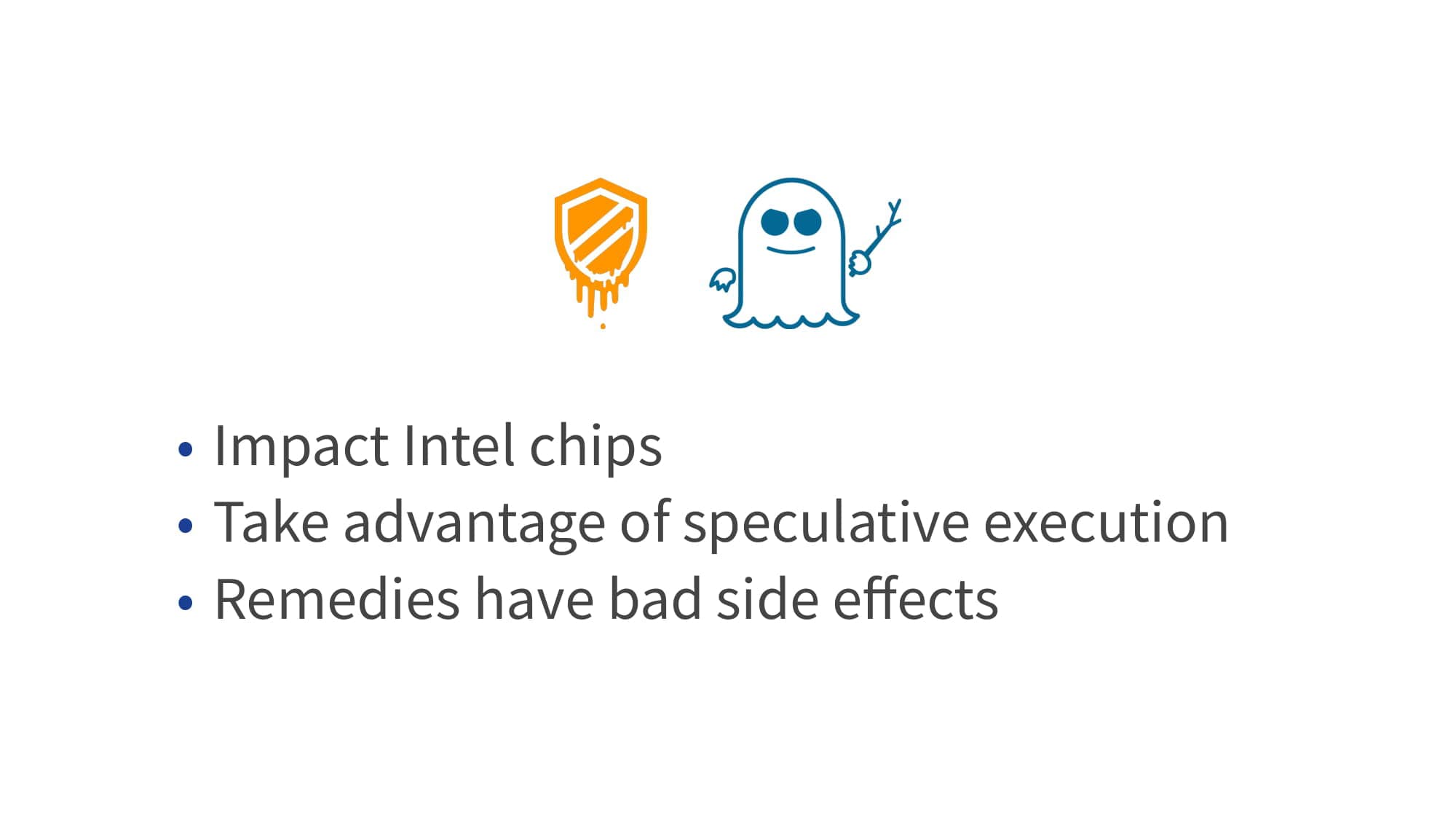 🔍 zoom So as you know the two players in questions are Meltdown and Spectre. These are probably some of the best logos I’ve seen that are associated with what are probably the worst computer vulnerabilities to ever be discovered since they pretty much affect everyone around the world. Okay, so having said that, Meltdown and Spectre are the names given to CPU flaws that affect nearly every computer chip manufactured within the last 22 years.