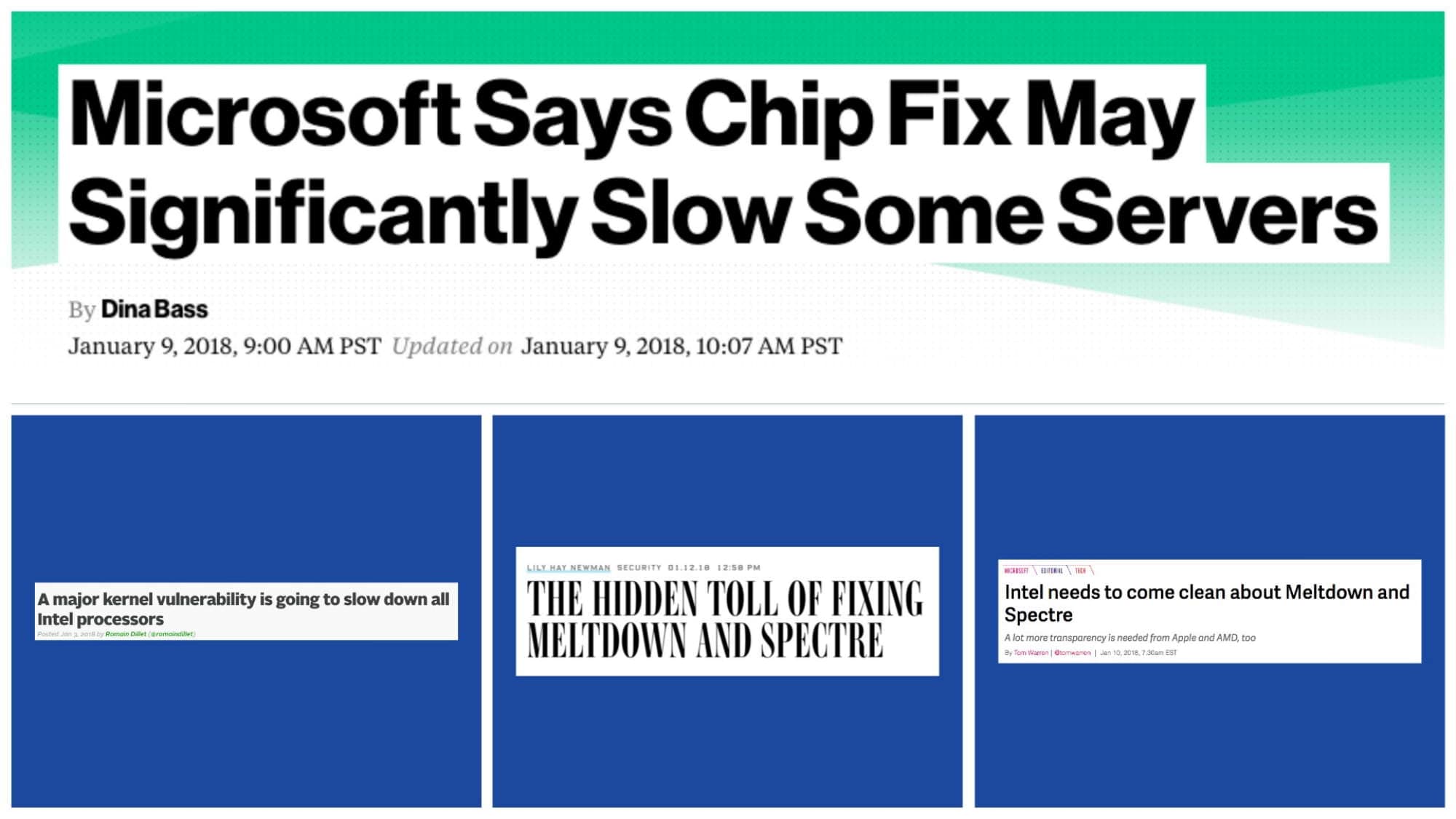 - https://hackernoon.com/tech-evangelists-reveal-the-secrets-to-attracting-great-developers-75398a5be6d8 - https://speakerdeck.com/bestie/meltdown-and-spectre-in-10-mins - https://github.com/IAIK/meltdown - https://www.linkedin.com/pulse/meltdown-spectre-bugs-explained-what-you-can-do-chuck-r-fields/ - https://www.quora.com/How-did-Google-detect-the-vulnerability-in-Intel-chips-and-did-it-receive-anythingin-return-for-telling-Intel-about-what-they-had-found# - https://www.quora.com/Is-speculative-execution-a-fundamentally-flawed-processor-feature - https://www.quora.com/What-do-you-think-of-Linus-Torvalds-reaction-to-Intels-Meltdown-Spectre-fix-as-comlete-and-utter-garbage - https://www.theverge.com/2018/1/6/16854668/meltdown-spectre-hack-explained-bank-heist-analogy - https://www.zdnet.com/article/spectre-and-meltdown-linux-creator-linus-torvalds-criticises-intels-garbagepatches/ - https://lkml.org/lkml/2018/1/21/192 - https://meltdownattack.com/ - https://thehackernews.com/2018/01/meltdown-spectre-vulnerability.html - https://www.engadget.com/2018/02/15/meltdownprime-spectreprime-research/ - https://www.quora.com/How-do-the-Meltdown-and-Spectre-attacks-work - https://blog.cloudflare.com/meltdown-spectre-non-technical/ - https://www.slideshare.net/Qualys/avoid-meltdown-from-the-spectre?qd=2feb2d24-0ead-48b4-b7f8-8a90c7dc439f&v=&b=&from_search=8