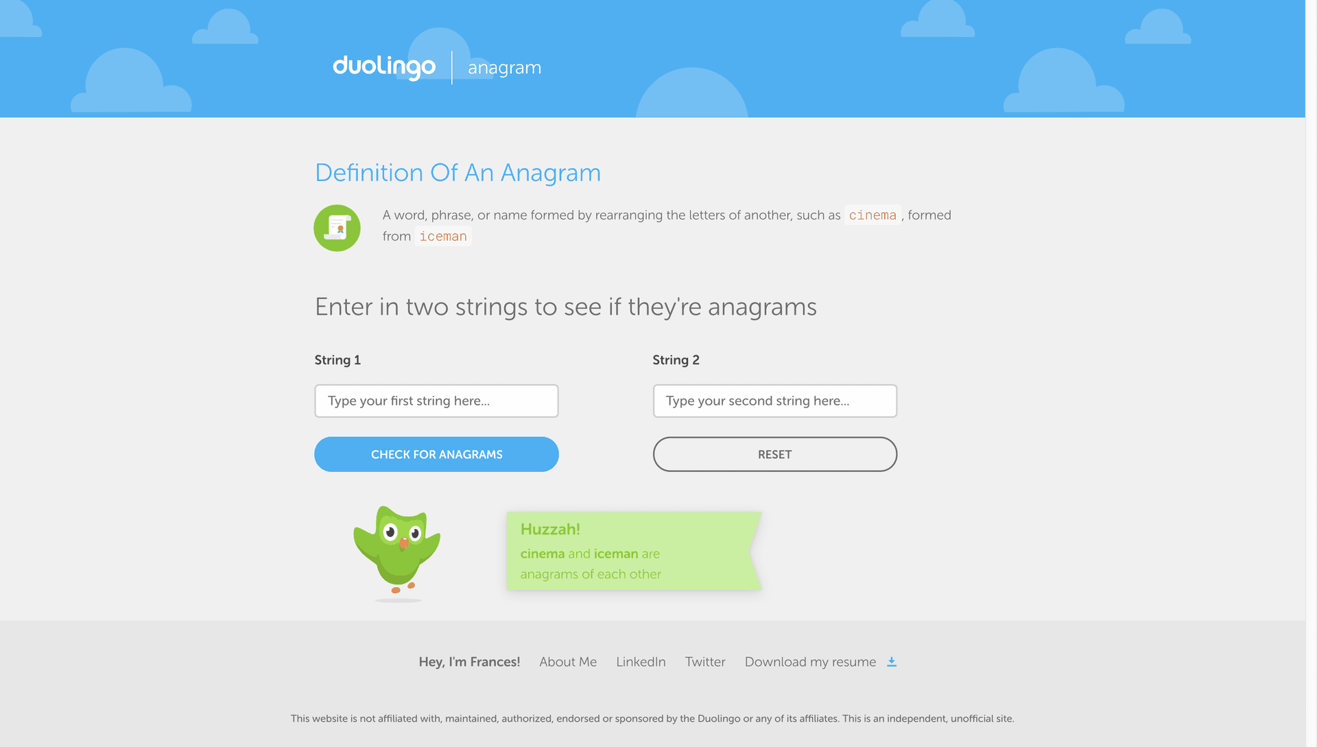 Duolingo Anagram Checker
