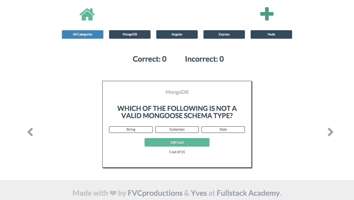 - Today, my partner Yves and I were the only team that showcased a flashcard design. So by default, we both won and lost the mini-competition for the best flashcard design. We each get a Fullstack t-shirt (I still haven’t gotten this yet -__-). - Here’s how the home page for our design ended up looking like, more or less: