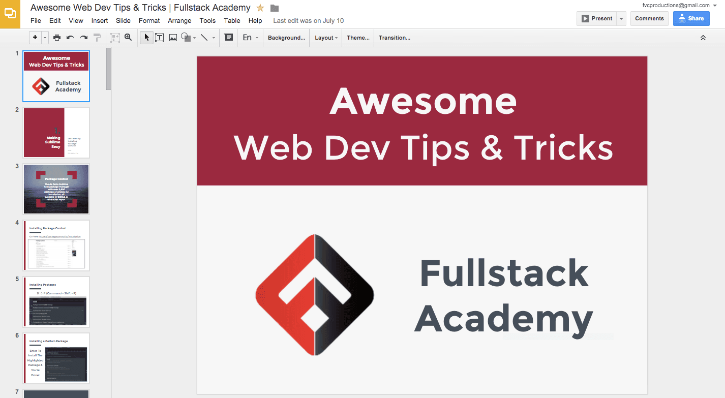 More auth stuff. - Last day of being a junior!!! - My contribution to Fullstack so far has been this Google Slide deck showcasing a bunch of web dev stuff I feel is relevant. I should probably update it soon.