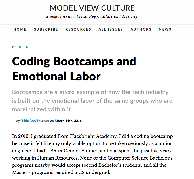 So I read this article recently on Coding Bootcamps and Emotional Labor.