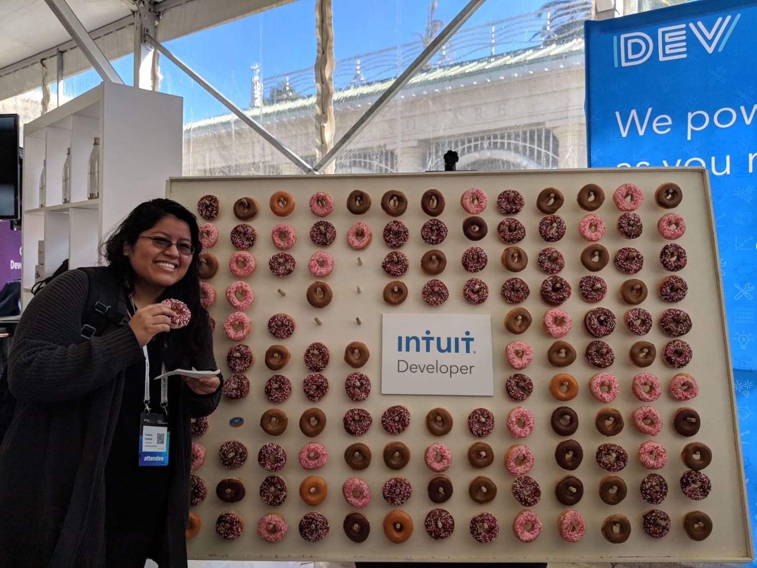 I took a break to check out the sponsor booths. I also grabbed a donut from Intuit’s donut wall. Kudos to them for having such a great idea in the first place because donuts to me seem pretty universally enjoyed.