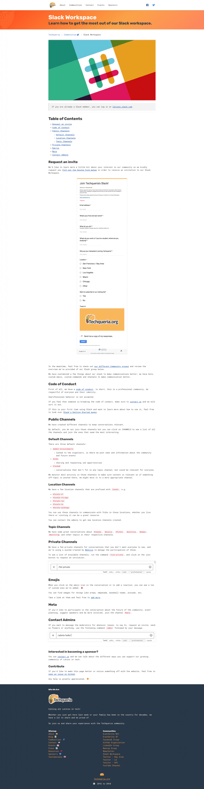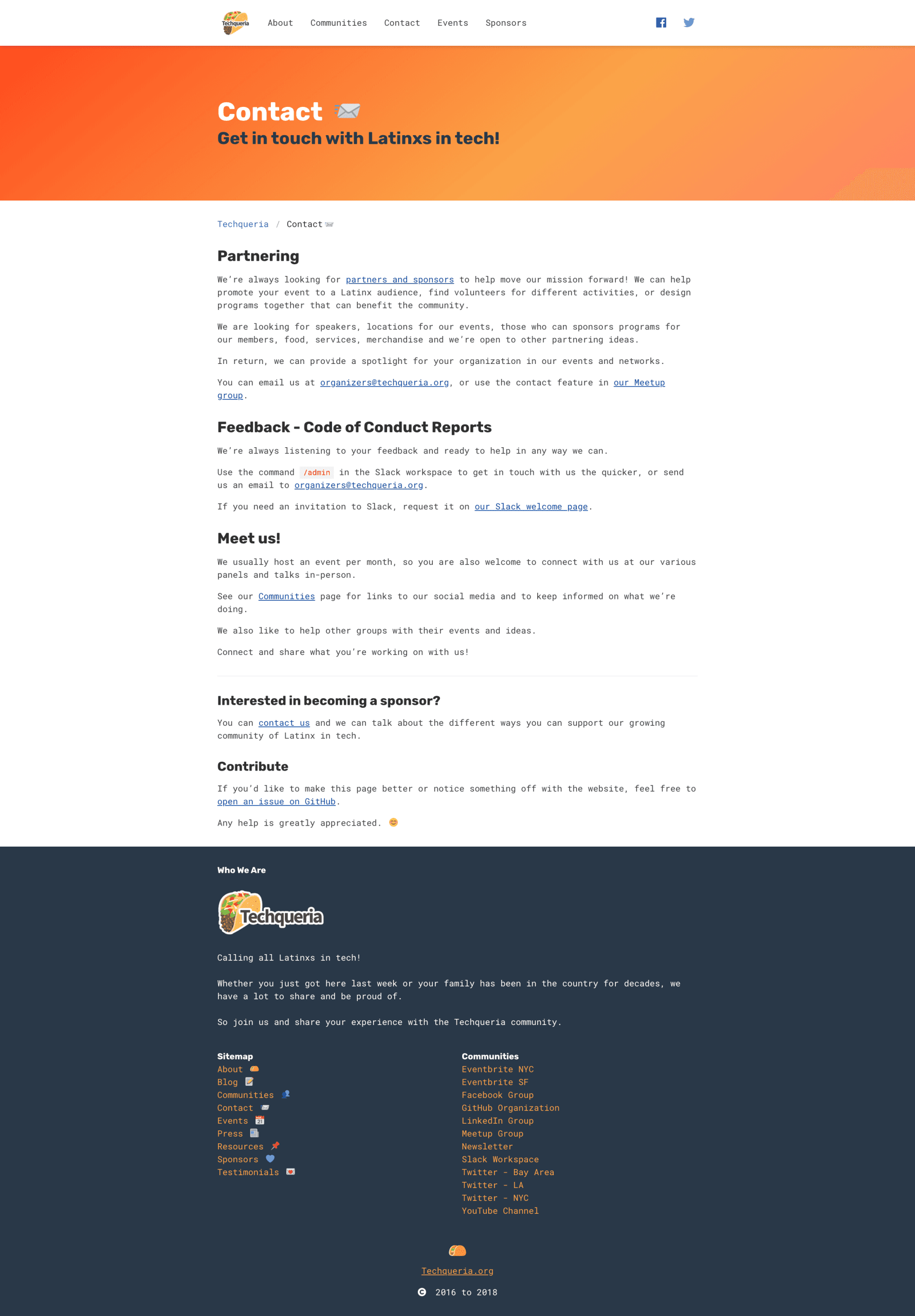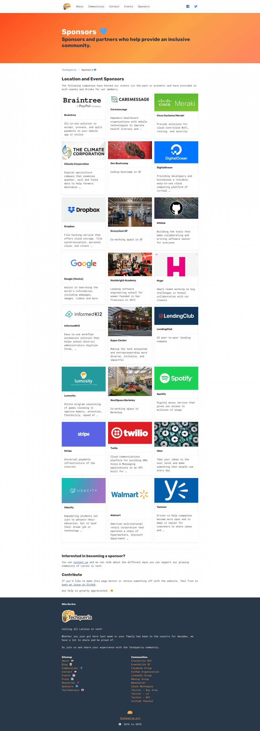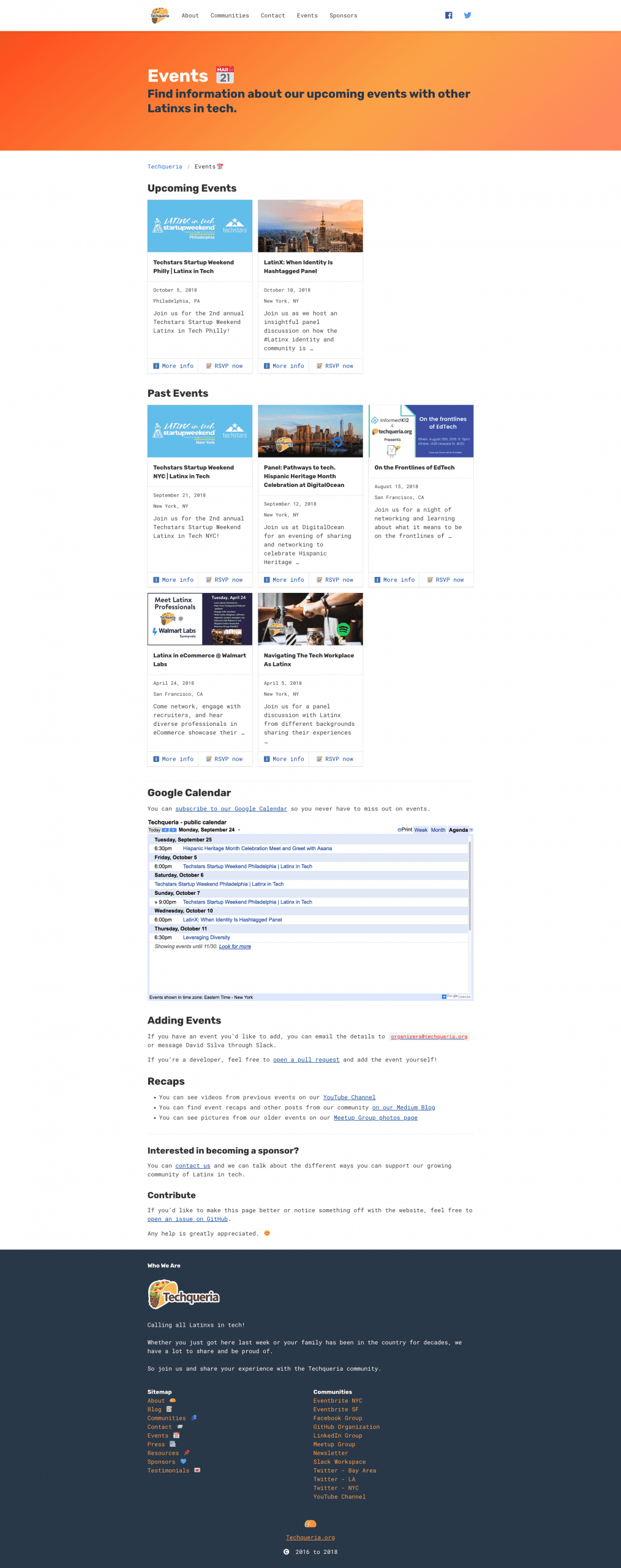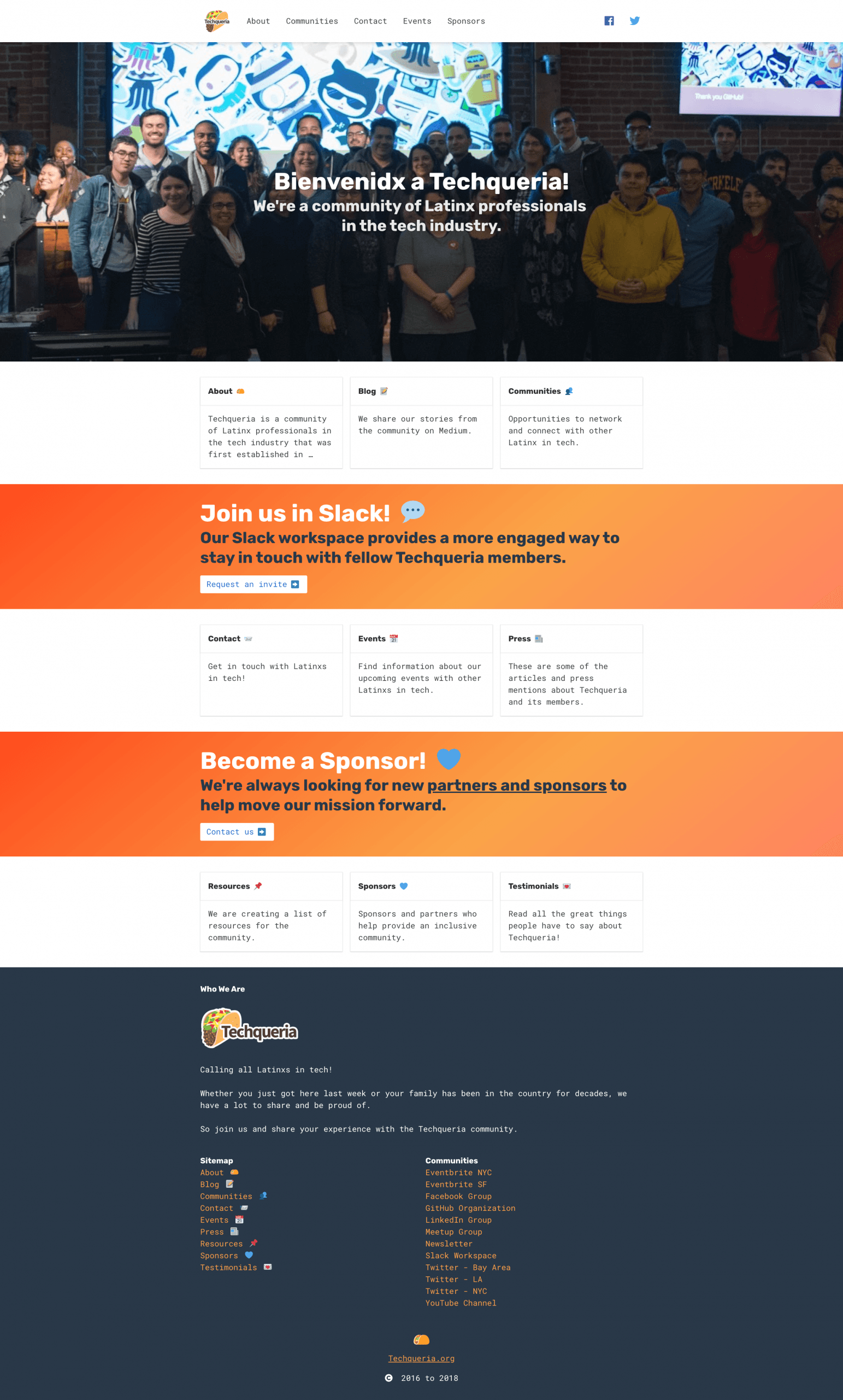 Source code can be found at https://github.com/techqueria/website.