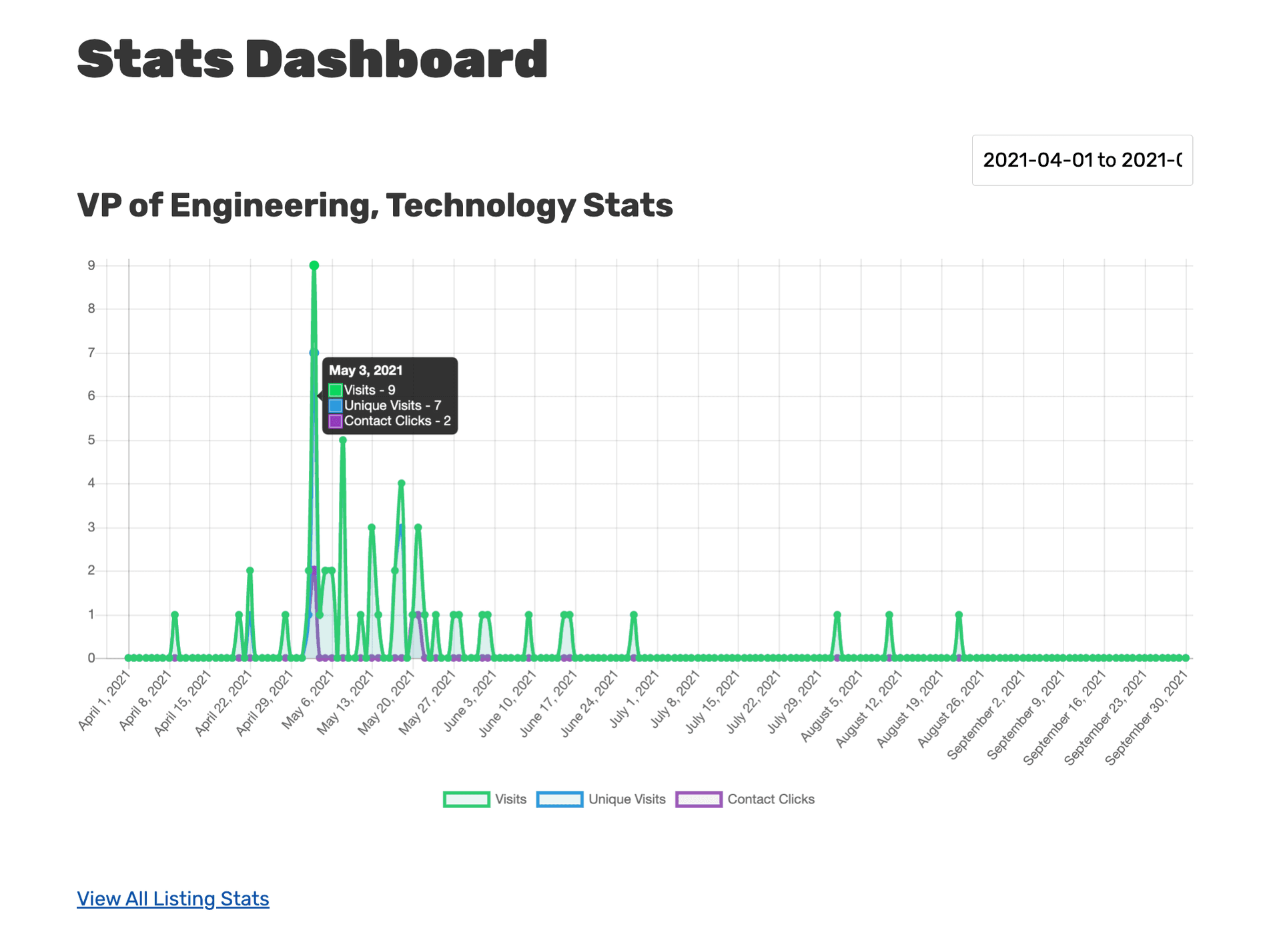 As of August 2, 2021 we’ve gotten ~700 page views on our job board within the last 28 days. Each job post is on average receiving at least 10 unique clicks.