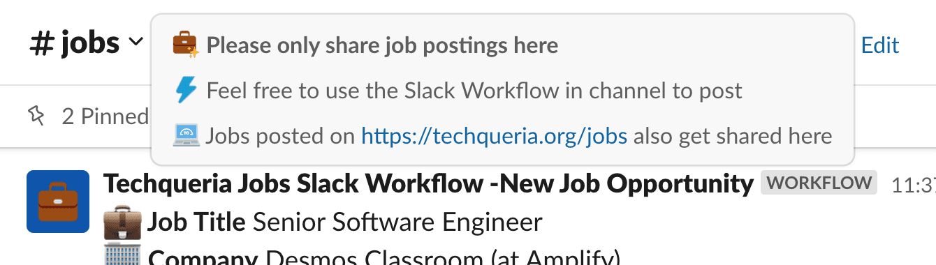 Examples in Slack #jobs