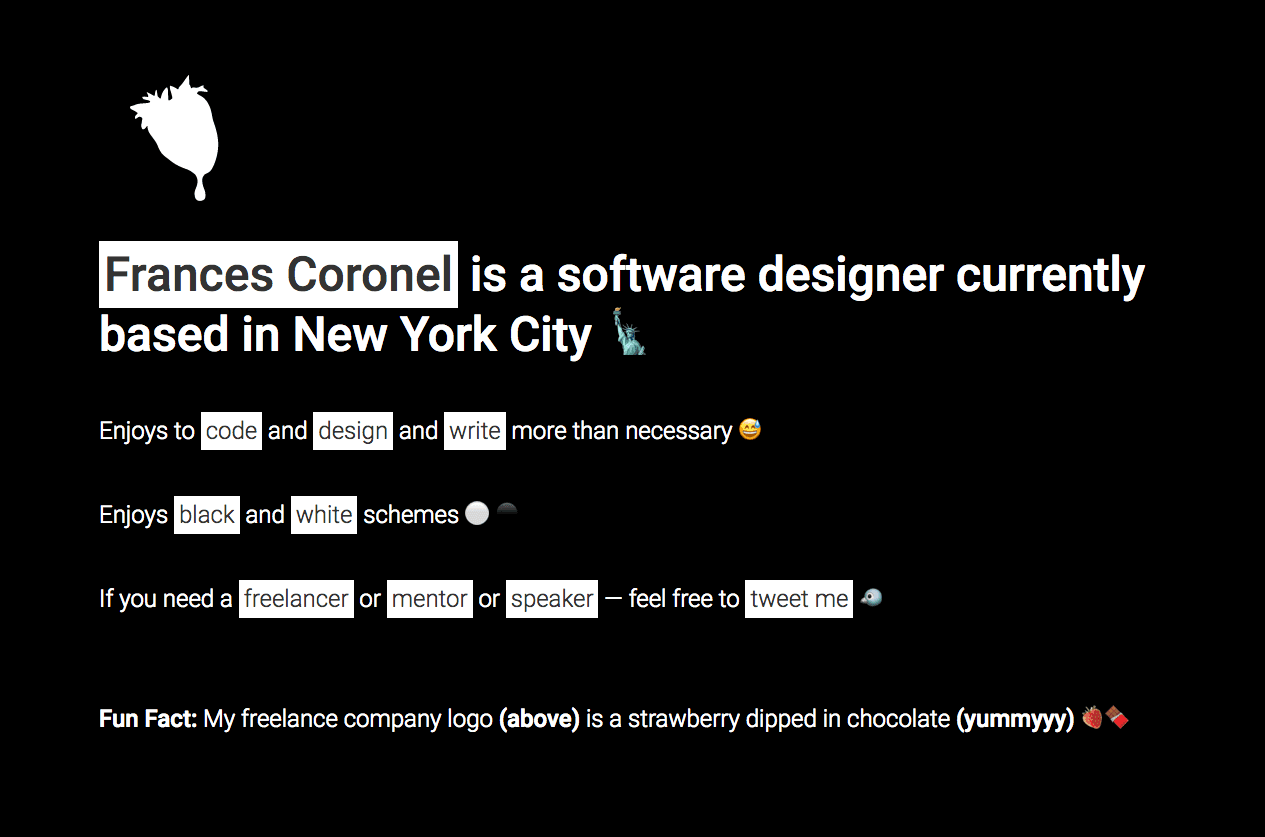 Updated my GitHub page in order to better showcase my current state of mind. If you click on 'black' or 'white', the interface changes colors. Woot! π