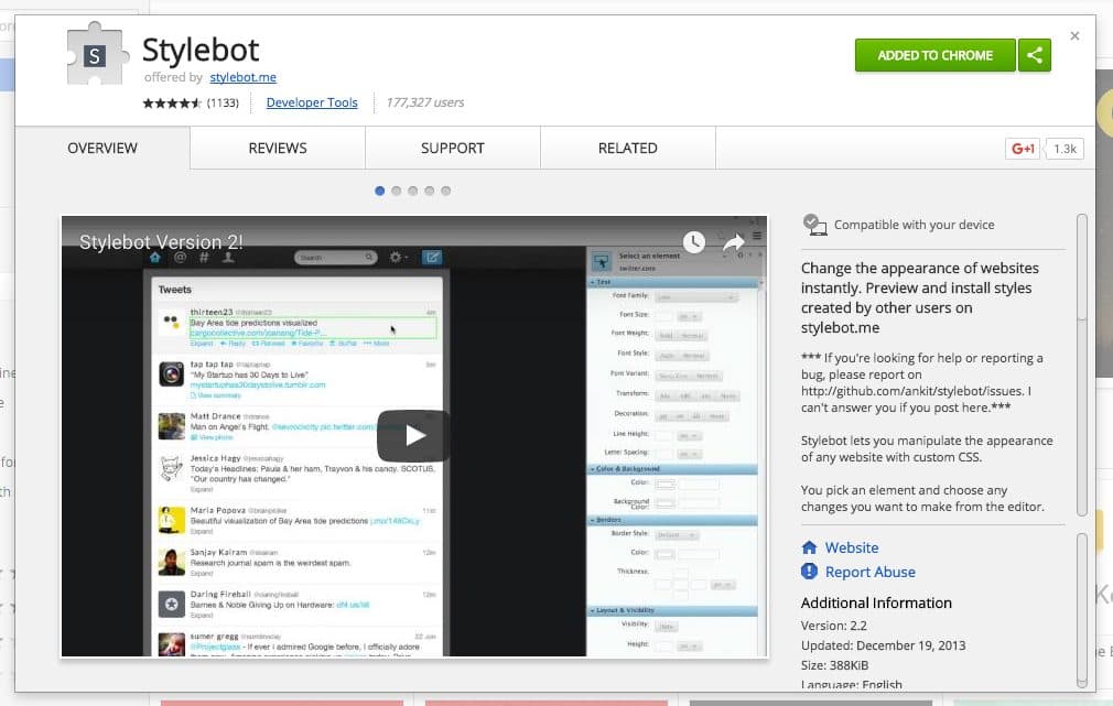 If you are still seeing the annoying popup, make sure that the Stylebot extension is enabled and refresh the page. Also, make sure the URL of the profile you want to view is formatted as
