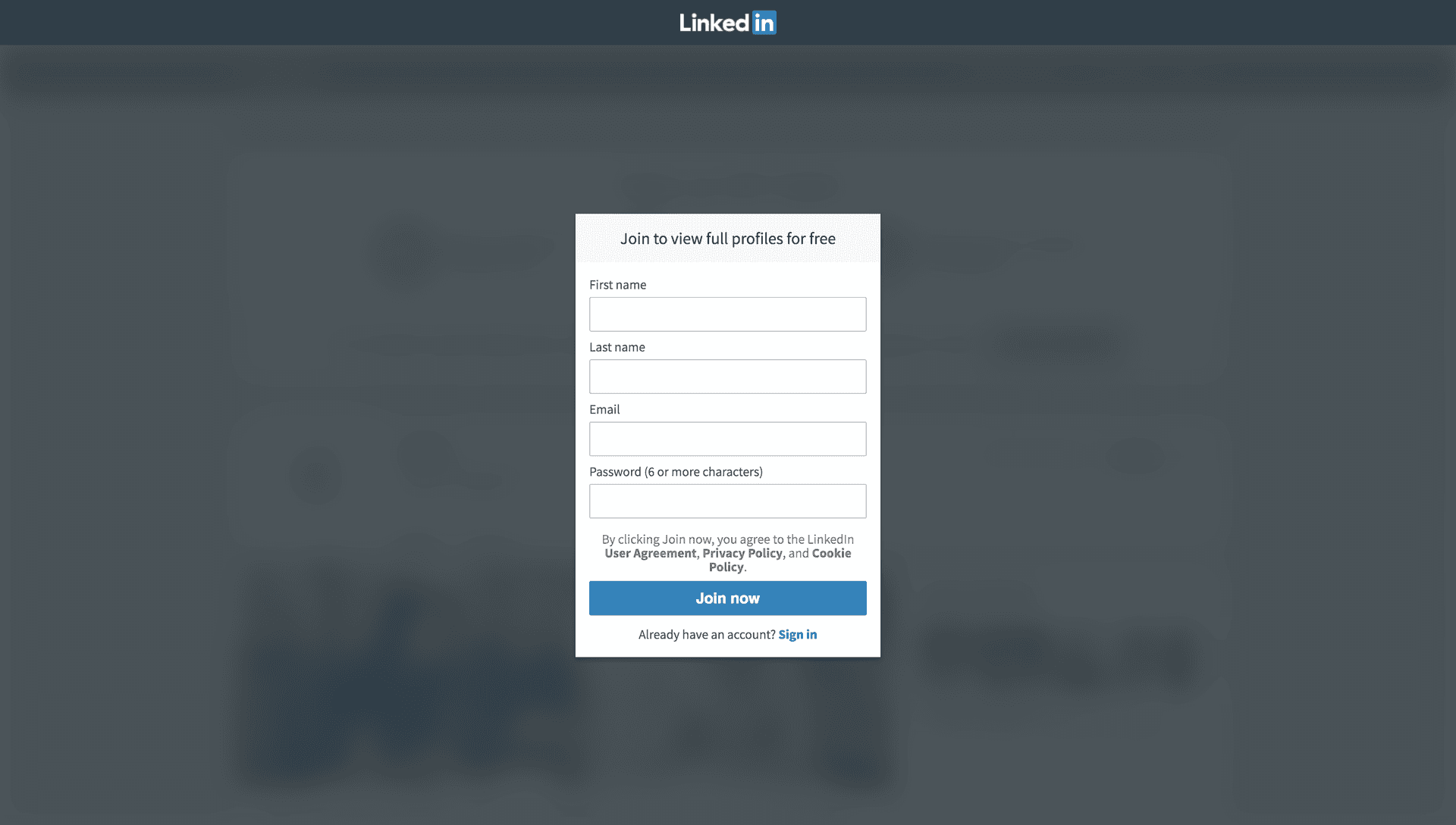 You want to view someone on LinkedIn but you donβt have a profile and have no desire to create an account.Or you want to view a profile but without the person knowing and youβre definitely not willing to spend all that cash on the premium upgrade which would allow you to do that (itβs $25+/month!!!). πΈ πΈ πΈEither way, LinkedIn wants you to sign in and will have an annoying popup that looks like the following:
