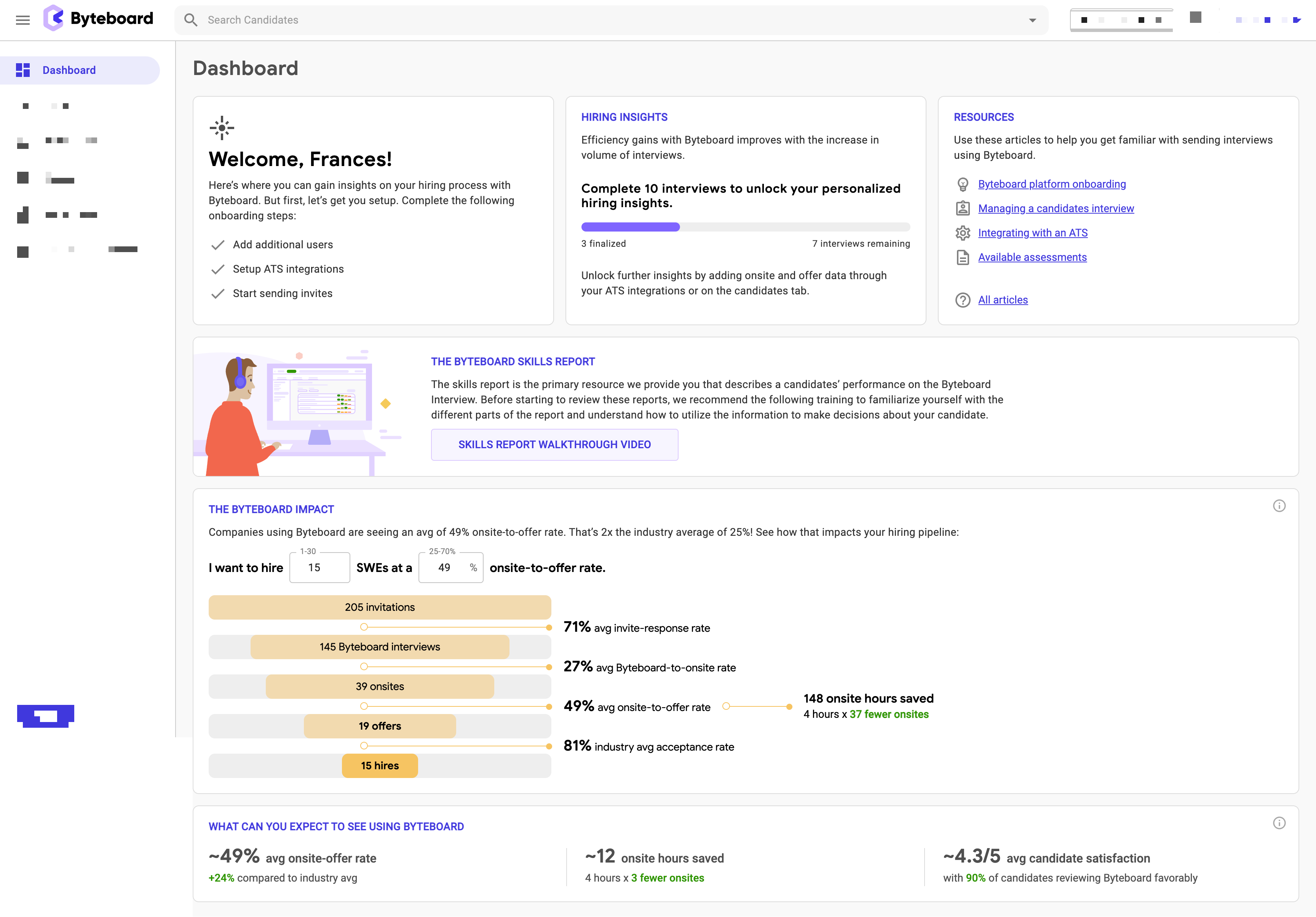 Helping reduce customer churn by creating a more useful first-time dashboard experience for a new client at Byteboard.